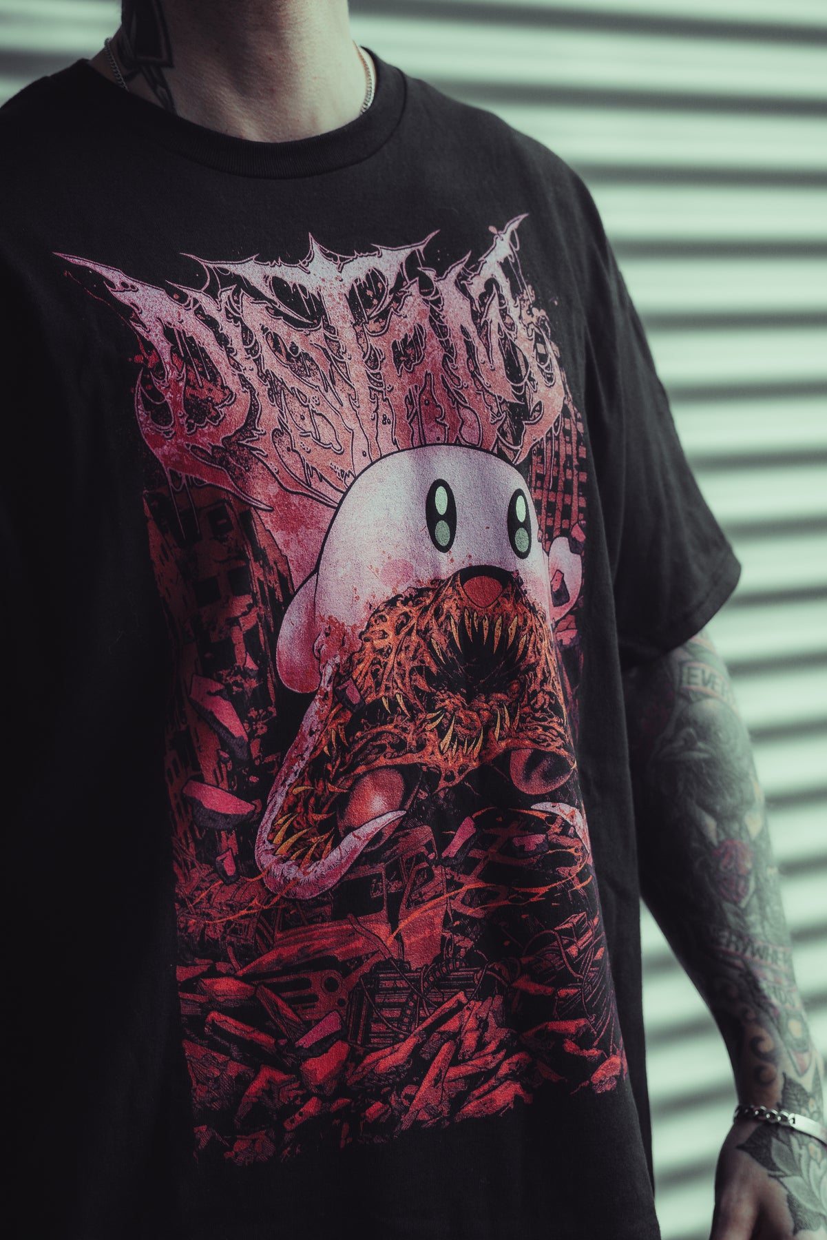 "Devourer” shirt with a front print, printed on black unisex Gildan Heavy Cotton shirt.