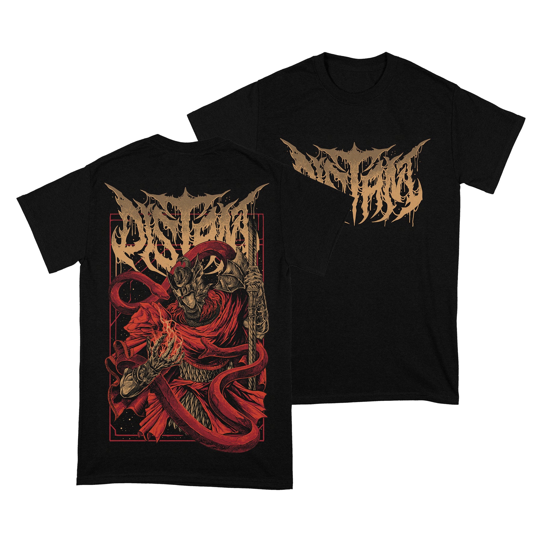“The Impaler” shirt with a front print logo and back print Impaler design, printed on black unisex shirt with custom tag.