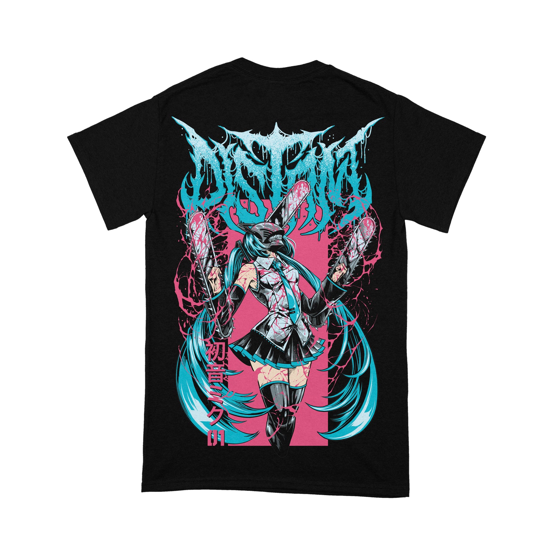 "Chainsaw Girl” shirt with a front print and back print, printed on black unisex Gildan Heavy Cotton shirt.
