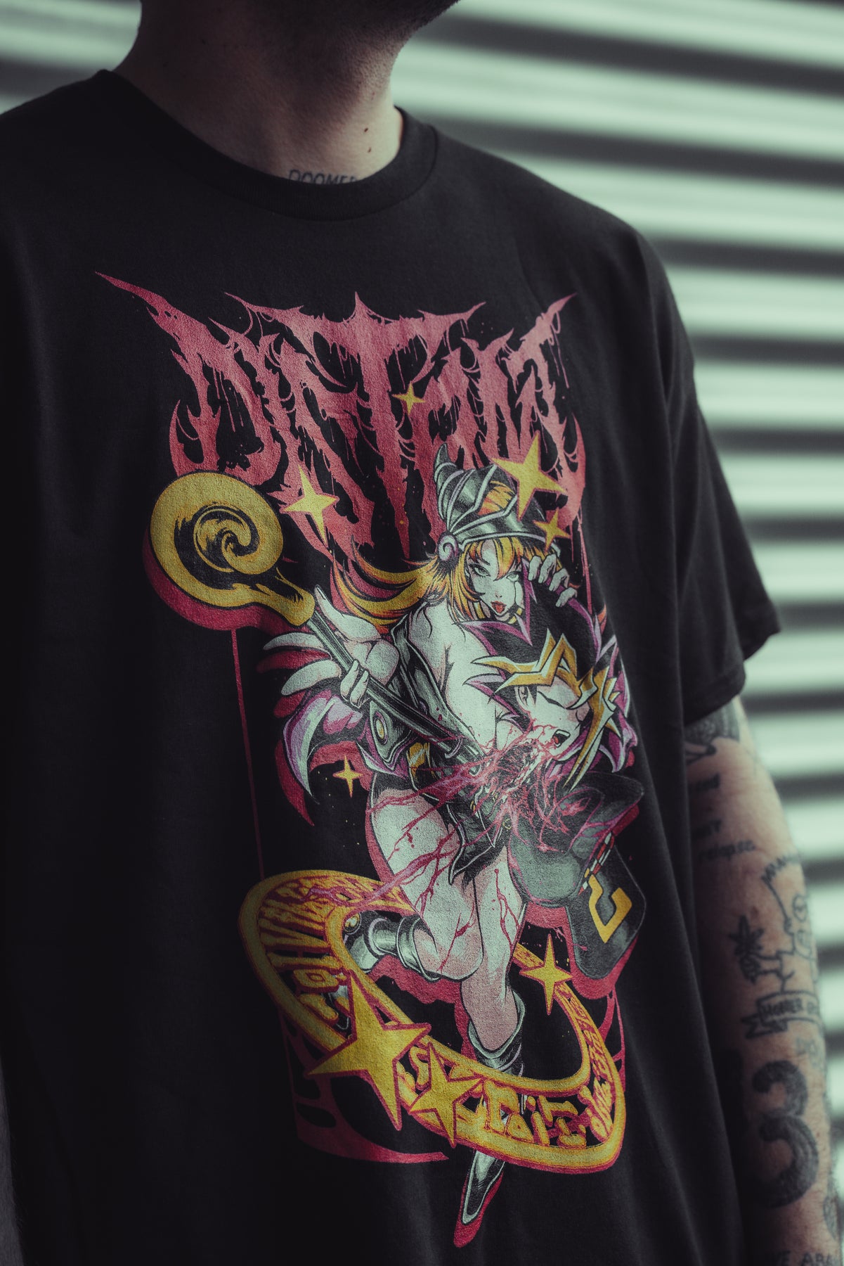 "Magician Girl” shirt with a front print, printed on black unisex Gildan Heavy Cotton shirt.